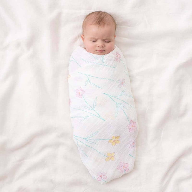 Adorable white swaddle with "hand drawn" flower design - the perfect gift for a newborn baby girl! Made from 100% cotton muslin, aden + anais swaddles are breathable, durable, and versatile. It’s undoubtably the best choice for gift givers and receivers alike. 47” x 47”