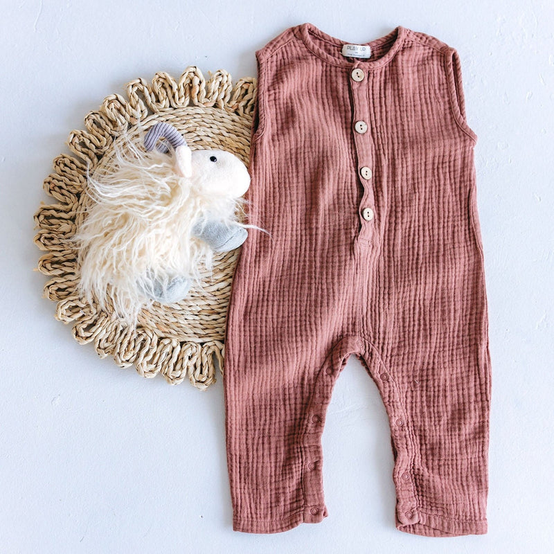 Jumpsuit is made from organic cotton and environmentally friendly dye, and is Standard 100 by Oeko-Tex certified non-toxic.